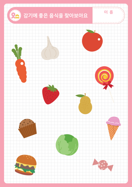 '감기에 좋은 음식을 찾아보아요' 활동지 입니다.