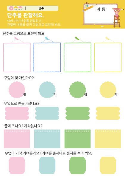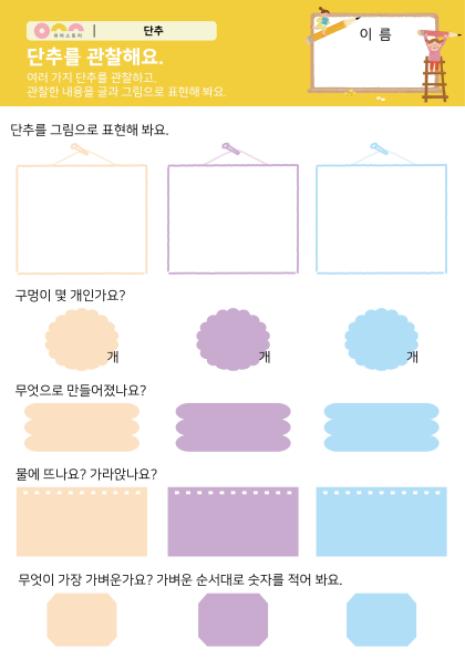활동내용 '단추를 관찰해요.' 과학 활동지입니다.