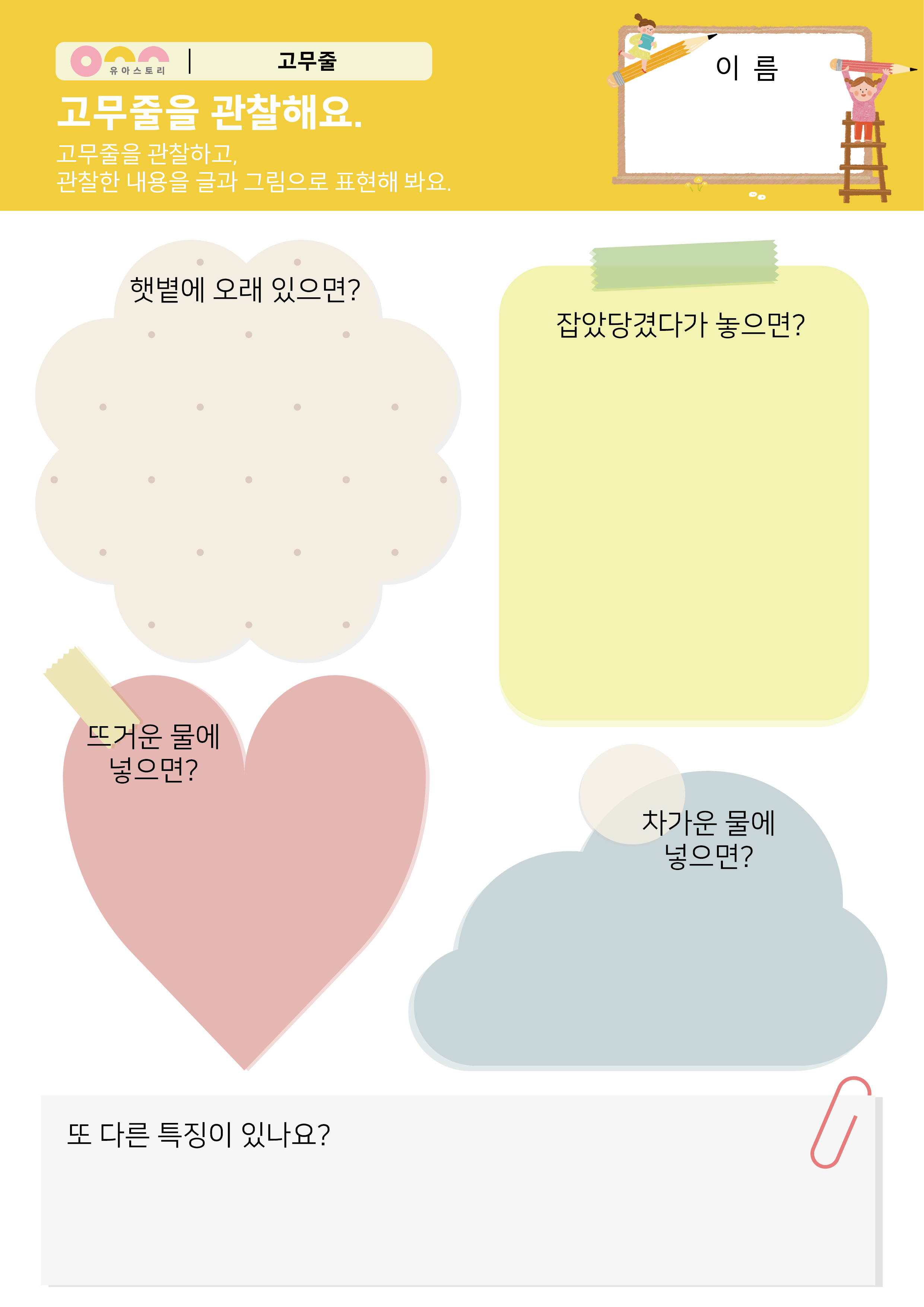 '고무줄을 관찰해요.' 과학 활동지입니다.