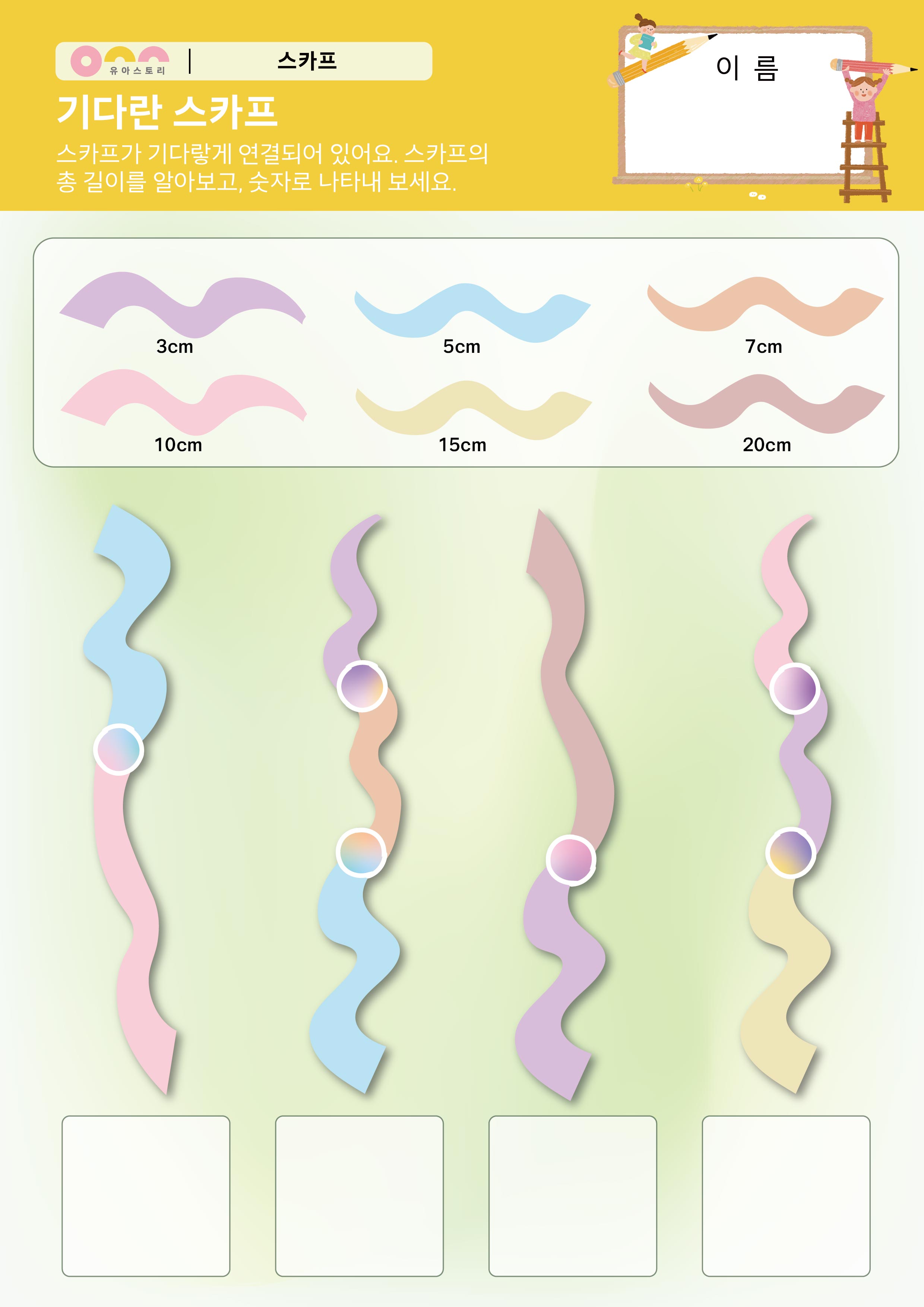 [기다란 스카프]스카프가 길게 연결되어 있어요.스카프의 총 길이를 알아보고 숫자로 나타내 보세요.