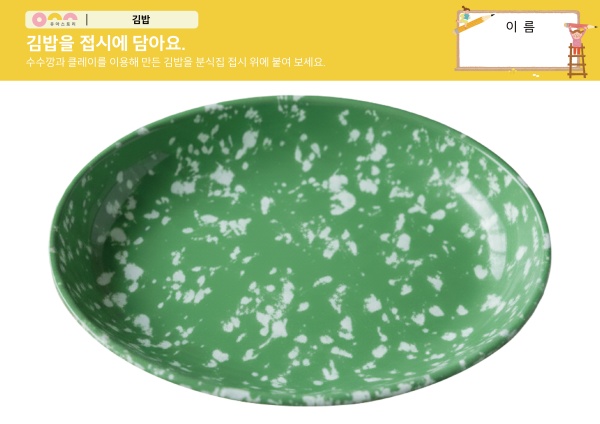 활동내용 수수깡과 클레이를 이용해 만든 김밥을 분식집 접시 위에 붙여 보세요.