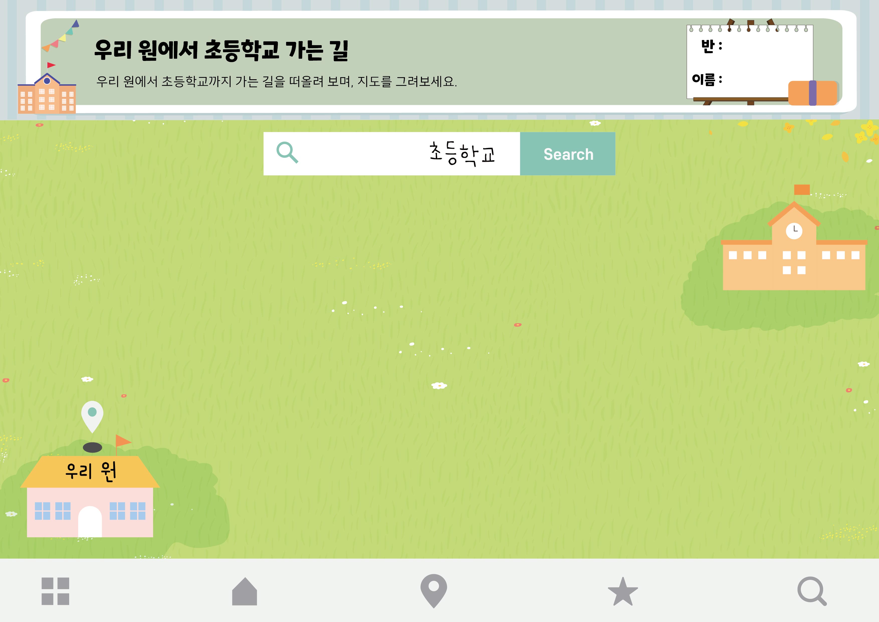 [우리 원에서 초등학교 가는 길]우리 원에서 초등학교 가는 길을 떠올려 보며, 지도를 그려보세요.