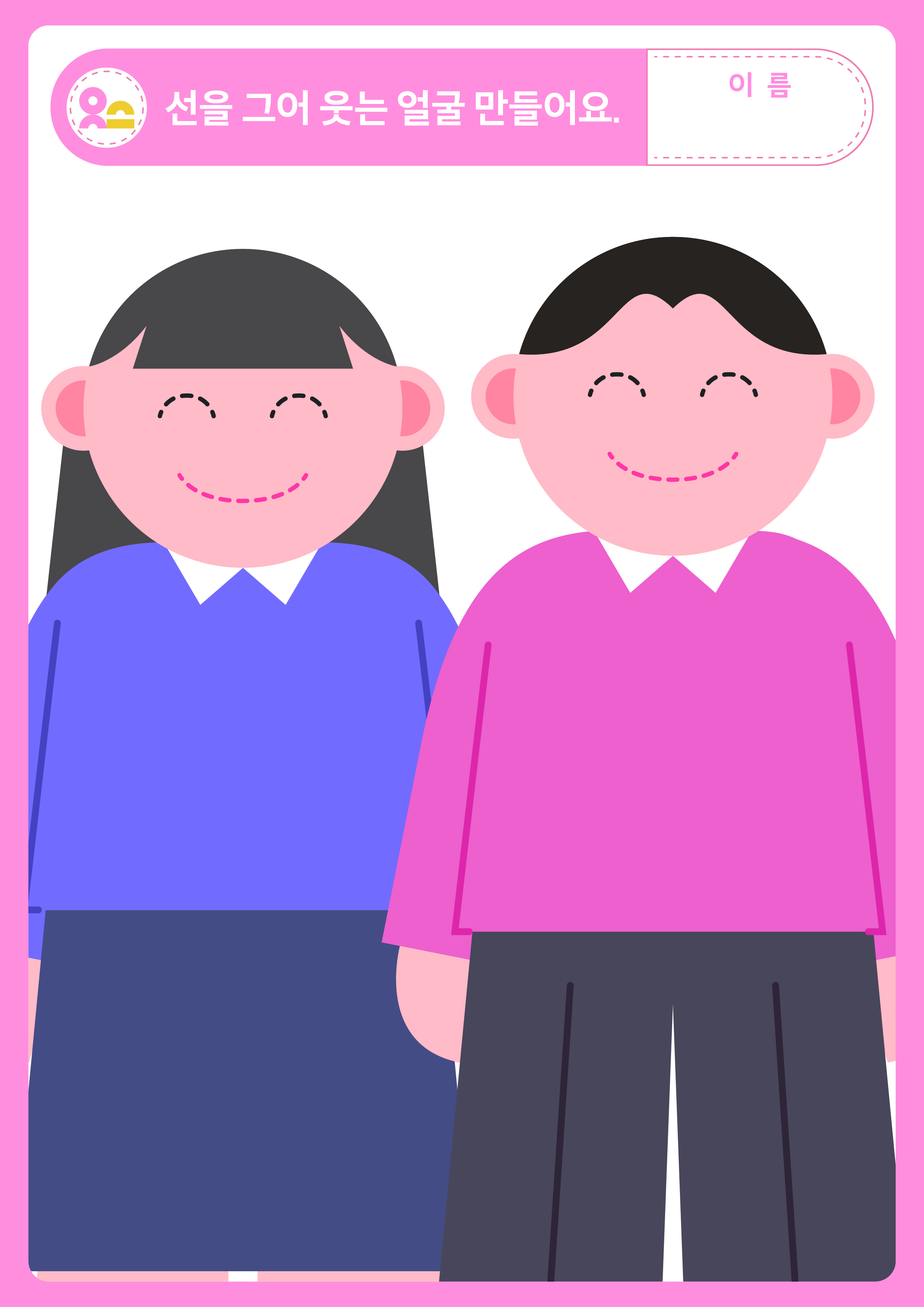 '선을 그어 웃는 얼굴 만들어요' 활동지입니다.