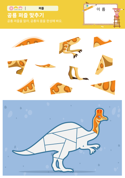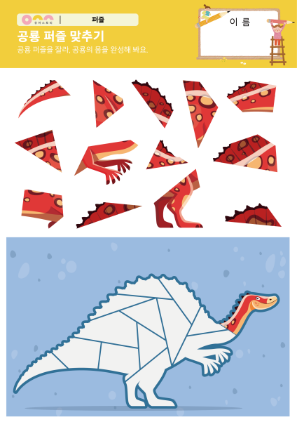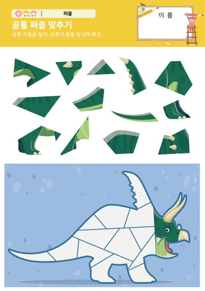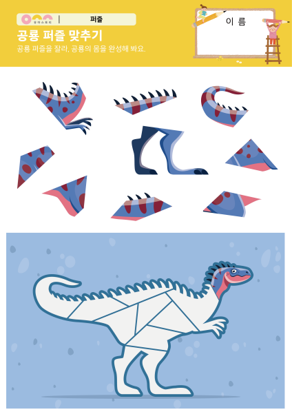 활동내용 '공룡 퍼즐 맞추기' 수조작 활동지입니다.