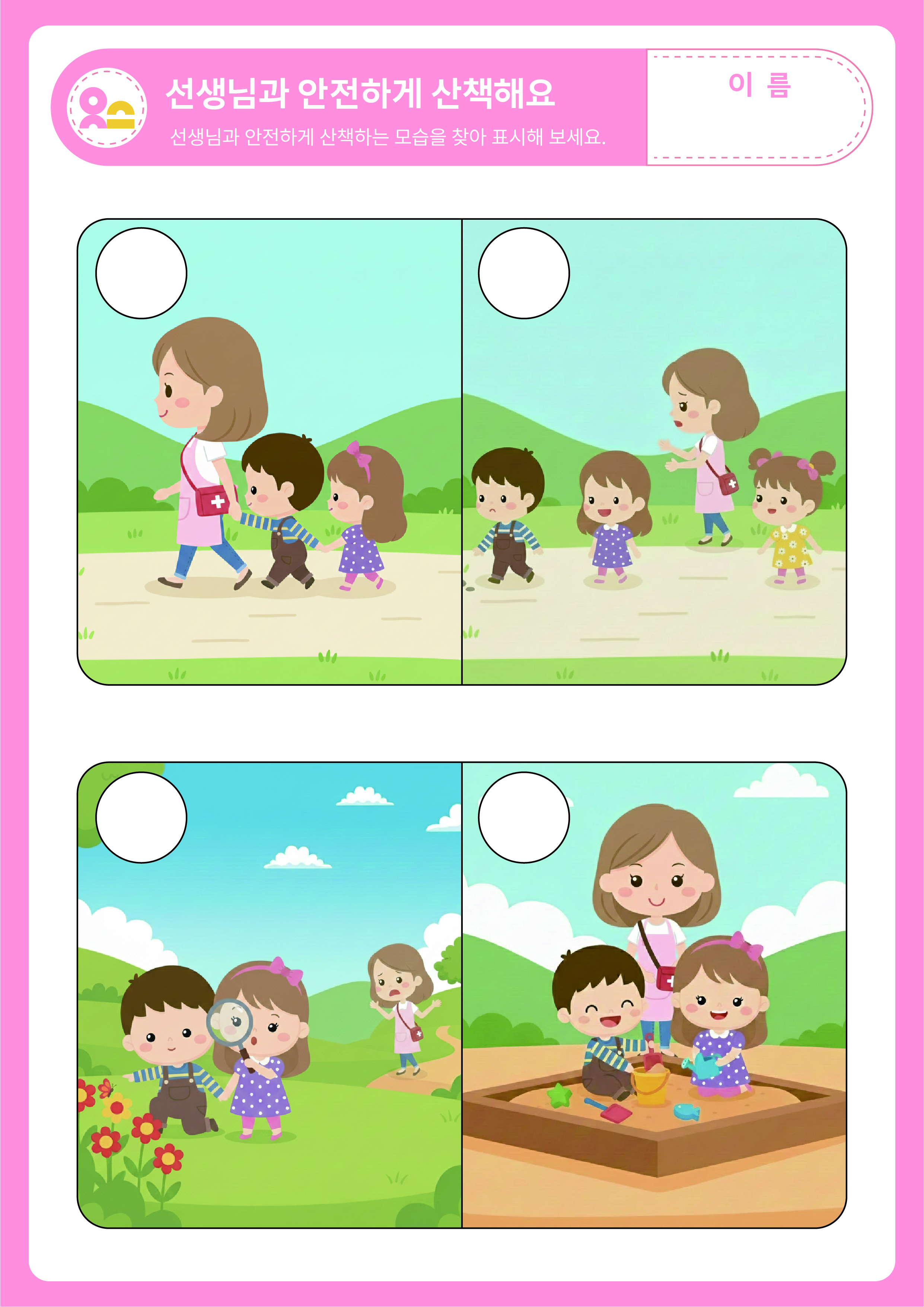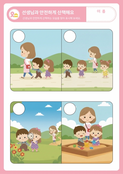 '실종·유괴의 예방, 방지 안전교육-선생님과 안전하게 산책해요' 활동 시 필요한 활동 지 입니다.