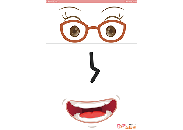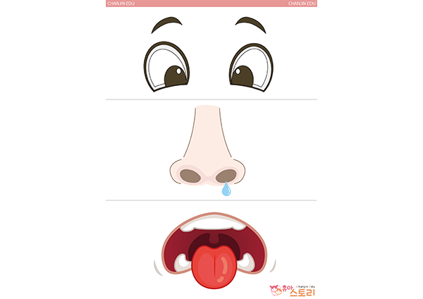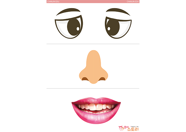 자르는 선을 따라 도안을 3등분 한 후, 눈코입 부분을 바꿔가면서 다양한 감정의 얼굴 표정을 만들어 보는 책 만들기 도안입니다.