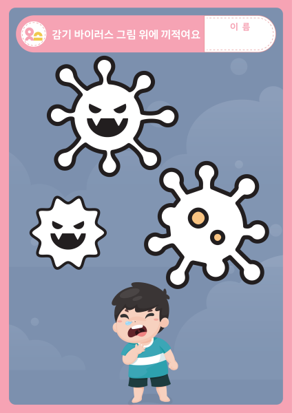 '감기 바이러스 그림 위에 끼적여요' 활동지 입니다.