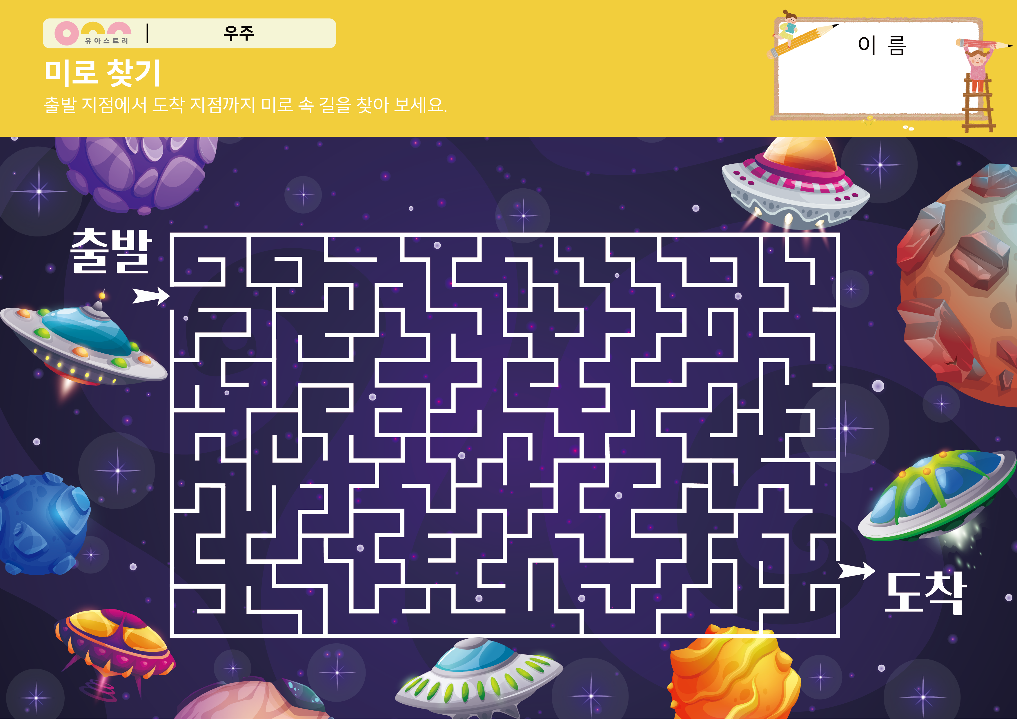 출발 지점에서 도착 지점까지 미로 속 길을 찾아 보세요.