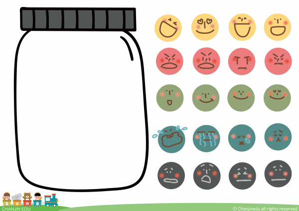 활동내용 '감정 병에 감정 솜 공을 담아요' 교구 만들기 도안입니다. '감정' 놀이 주제 시 활용할 수 있습니다.