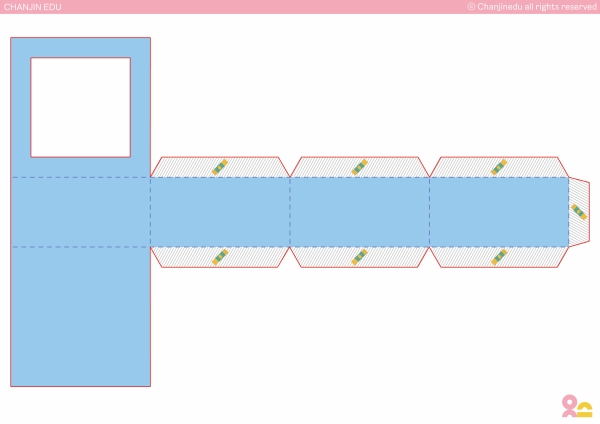 ② 교구 윗면의 선을 따라 오려내어, 모양 구멍을 만든다.