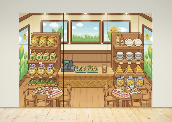 '옥수수 음식점 분할 배경(내부)' 도안입니다.