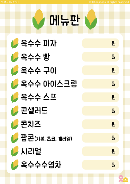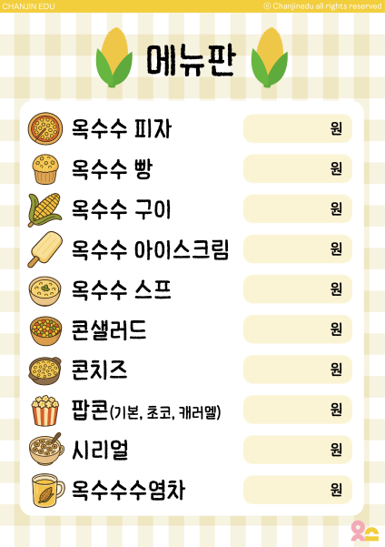 옥수수 음식점을 구성하는 쌓기놀이에 활용할 수 있습니다.