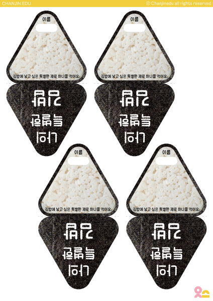 김밥에 넣고 싶은 특별한 재료를 적어볼 수 있는 도안 자료입니다.