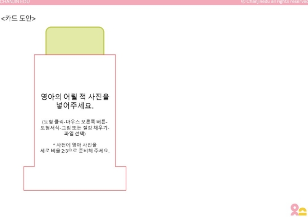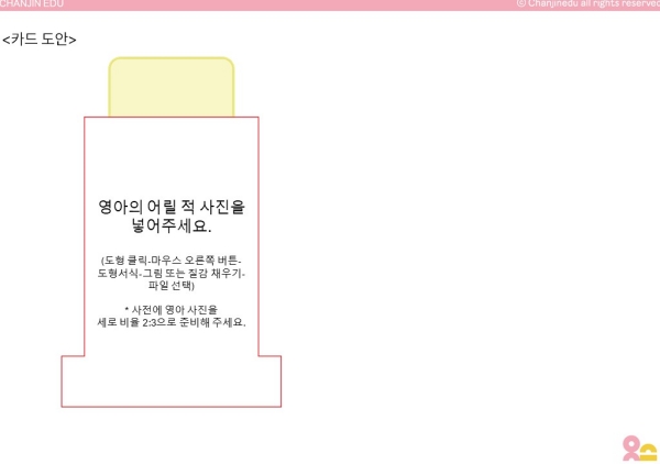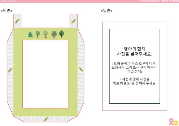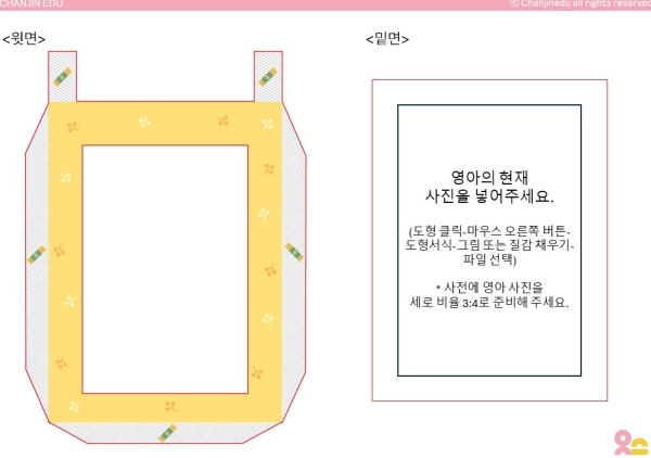 ➀ 도안 PPT 파일에서 밑면 도안에는 영아의 현재 사진을, 카드 도안의 네모 칸에는 영아의 아기 때 사진을 삽입한다.