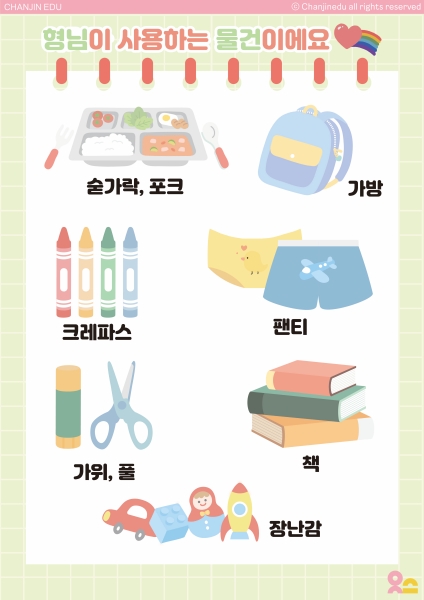 활동내용 '아기 물건과 형님 물건 벽보 보며 이야기 나눠요' 활동 시 사용할 수 있는 도안입니다.