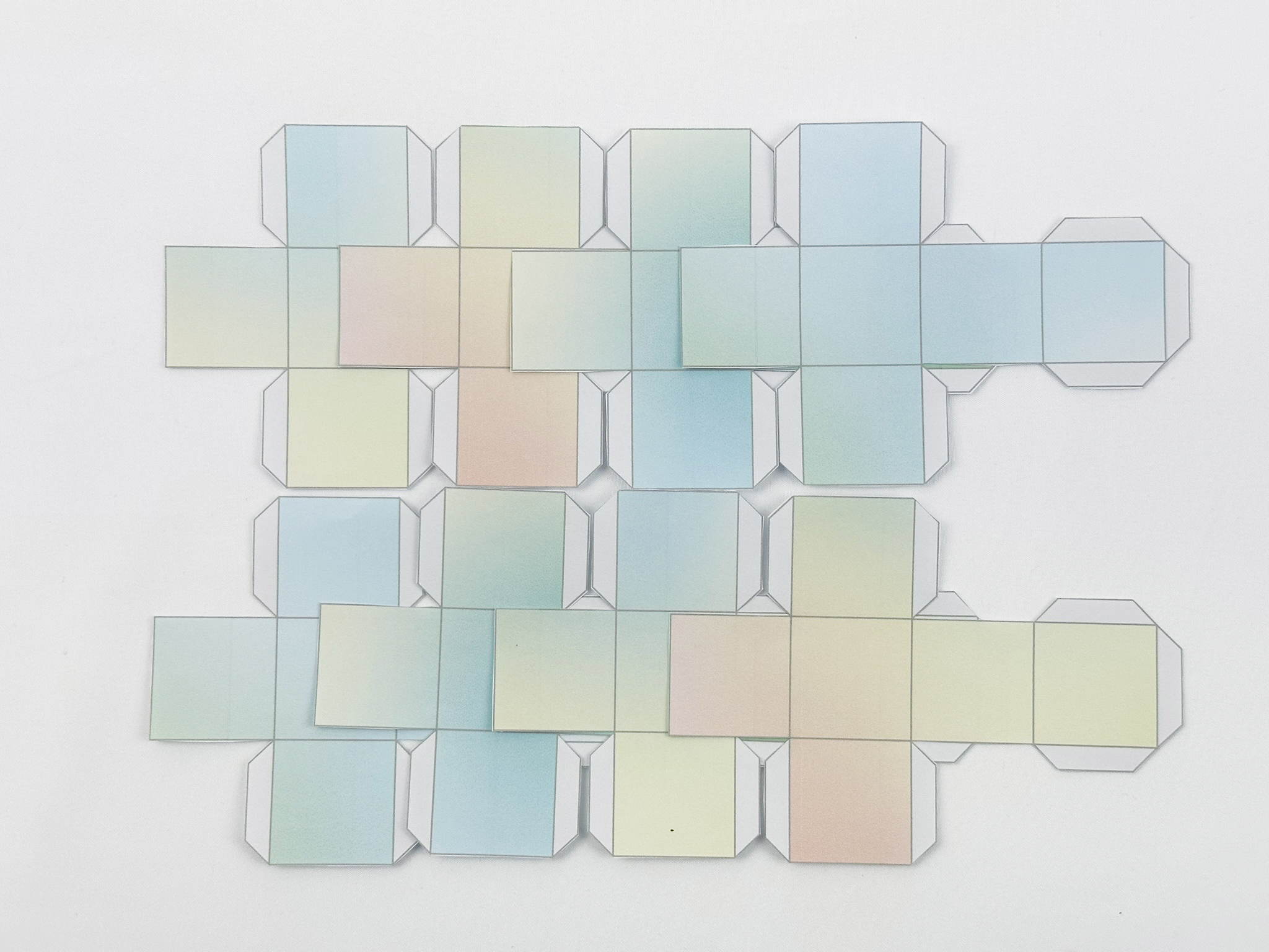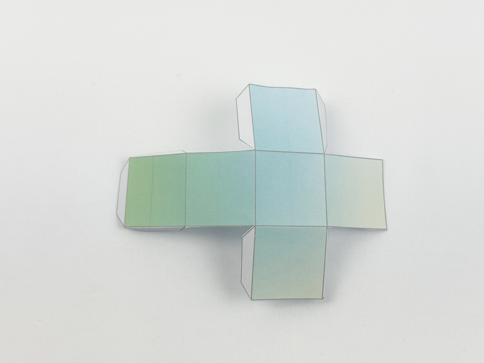 1) 도안을 자르고, 풀칠해 입체 도형을 만든다.