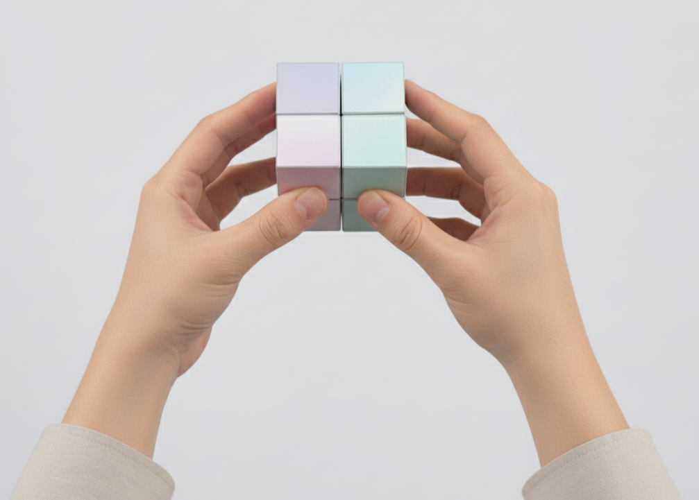 5) 테이프를 붙인 큐브는 뒤로 돌리고,