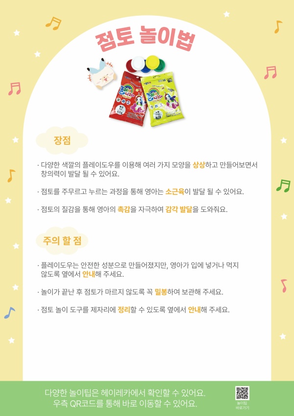 놀이 시에는 “손으로 누르니까 납작해졌네!”, “길게 늘리면 뭐가 될까?”처럼
