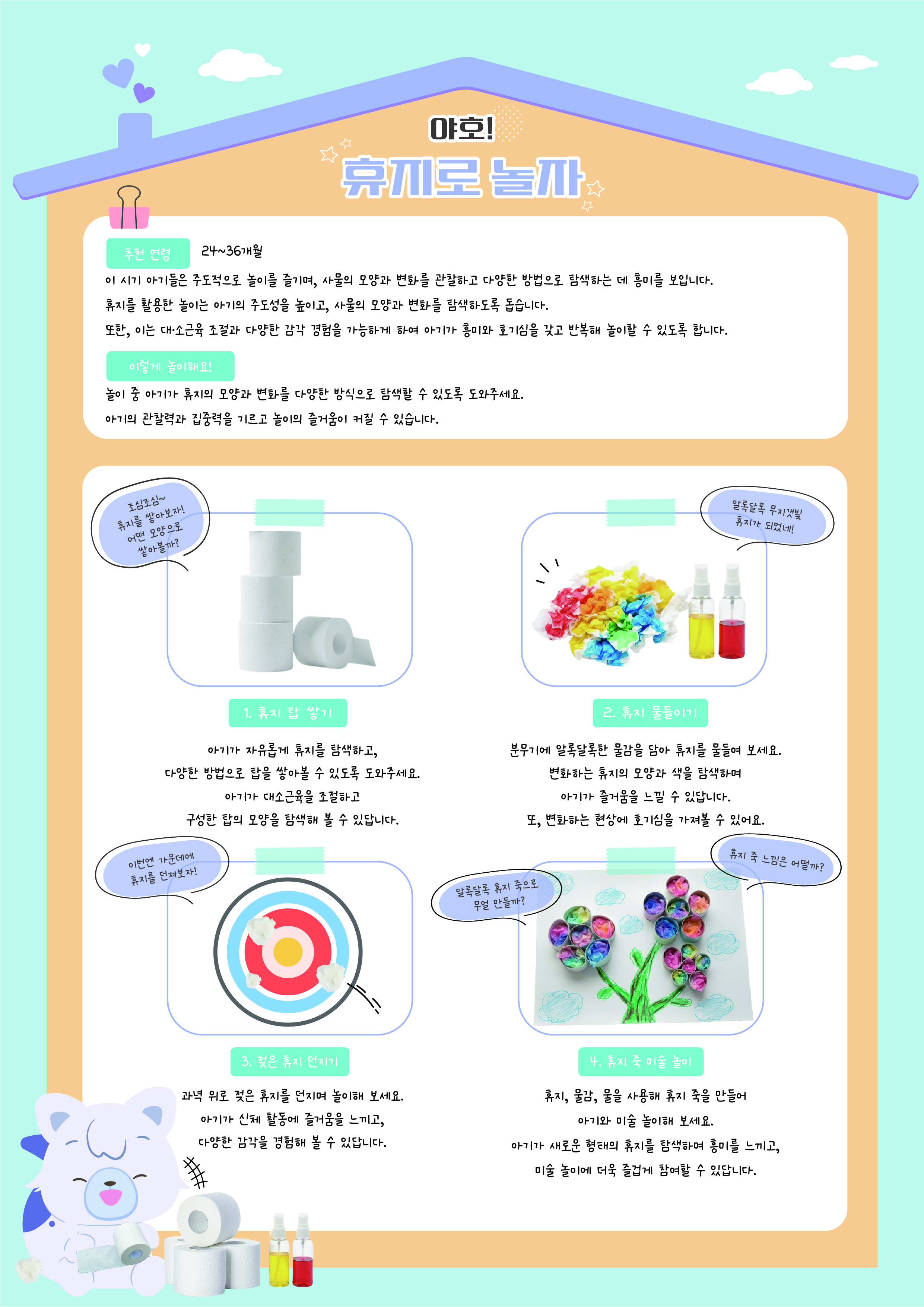 24~36개월 아기에게 추천하는 '야호! 휴지로 놀자‘ 놀이를 소개합니다.
