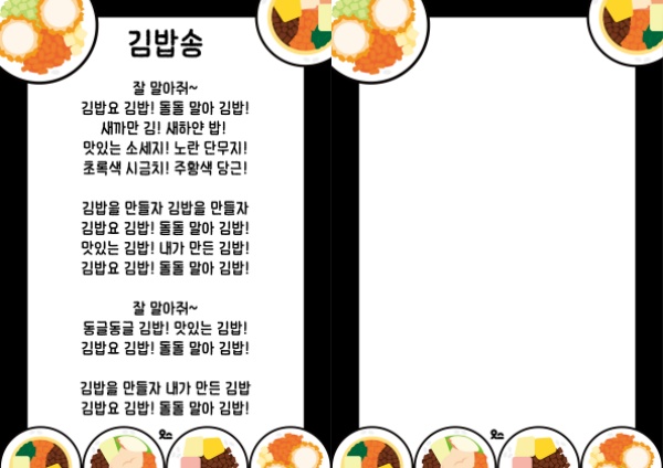 2025년 > 1월 > 1주 > 유아 > 방과후반 > 연간놀이계획안 > 활동 > 음악 [새노래] 김밥송