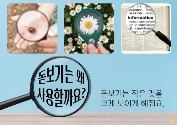 돋보기의 생김새, 특징, 원리 등에 관해 알아볼 수 있는 이야기 나누기 PPT 자료입니다.