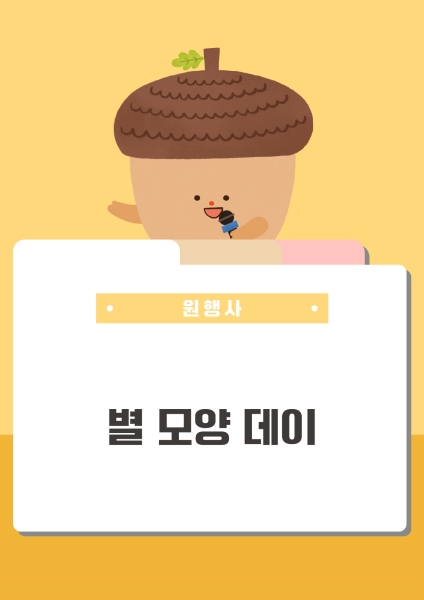 <행사 전> 안녕하세요. 깊어지는 가을, 아이들의 마음에 빛나는 추억을 심어 주기 위해 ‘별 모양 데이’ 행사를 준비했습니다. 이번 행사는 아이들의 호기심과 표현력을 기를 수 있도록 돕는 다양한 별 모양 관련 놀이가 진행될 예정입니다. 학부모님들의 많은 관심 부탁드립니다.