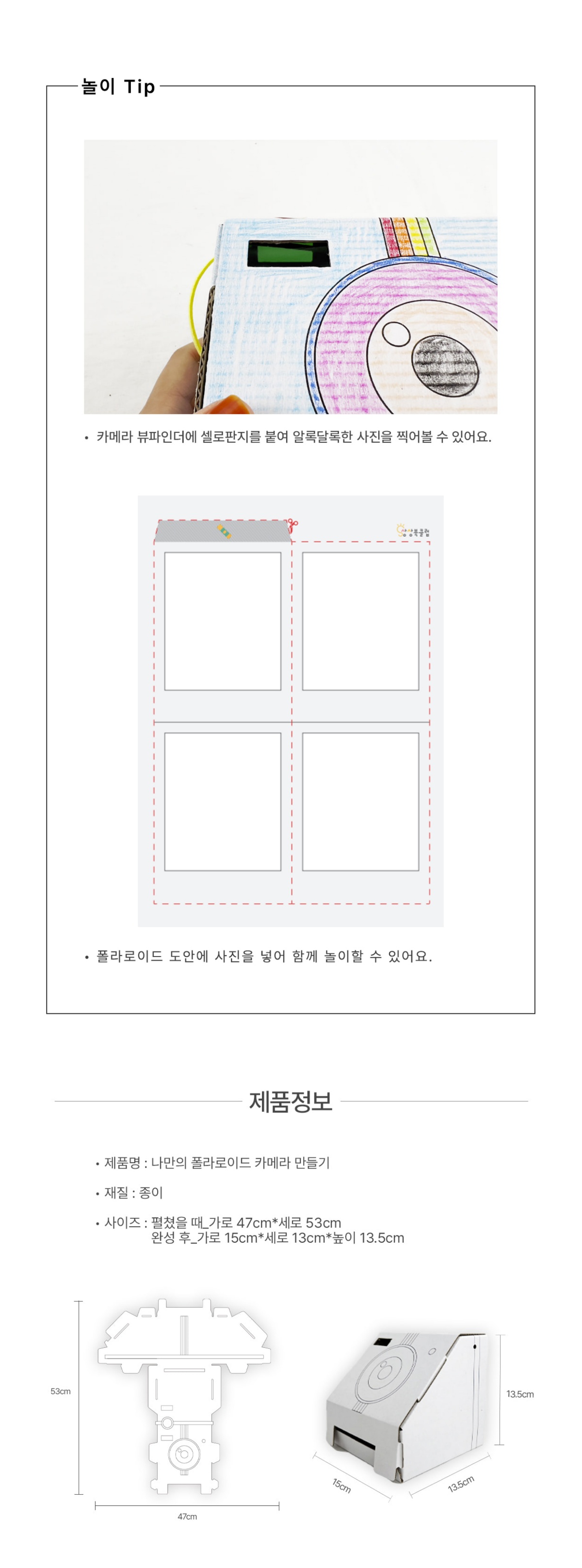 나만의 폴라로이드 만들기 교구입니다.상품 구성: 폴라로이드 카메라 10개입(무료 배송) + 폴라로이드 도안(PDF)
